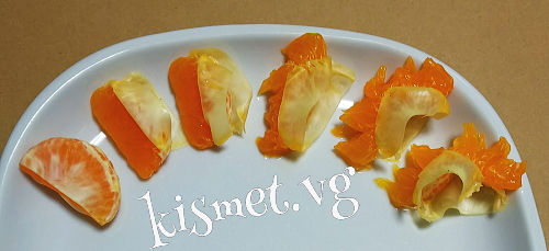 ミカンの袋が両側に開いてありますね。