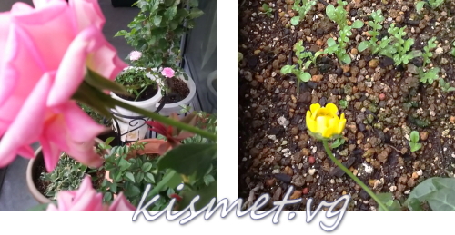 ヴェランダでコンテナに ばら蒔きをした